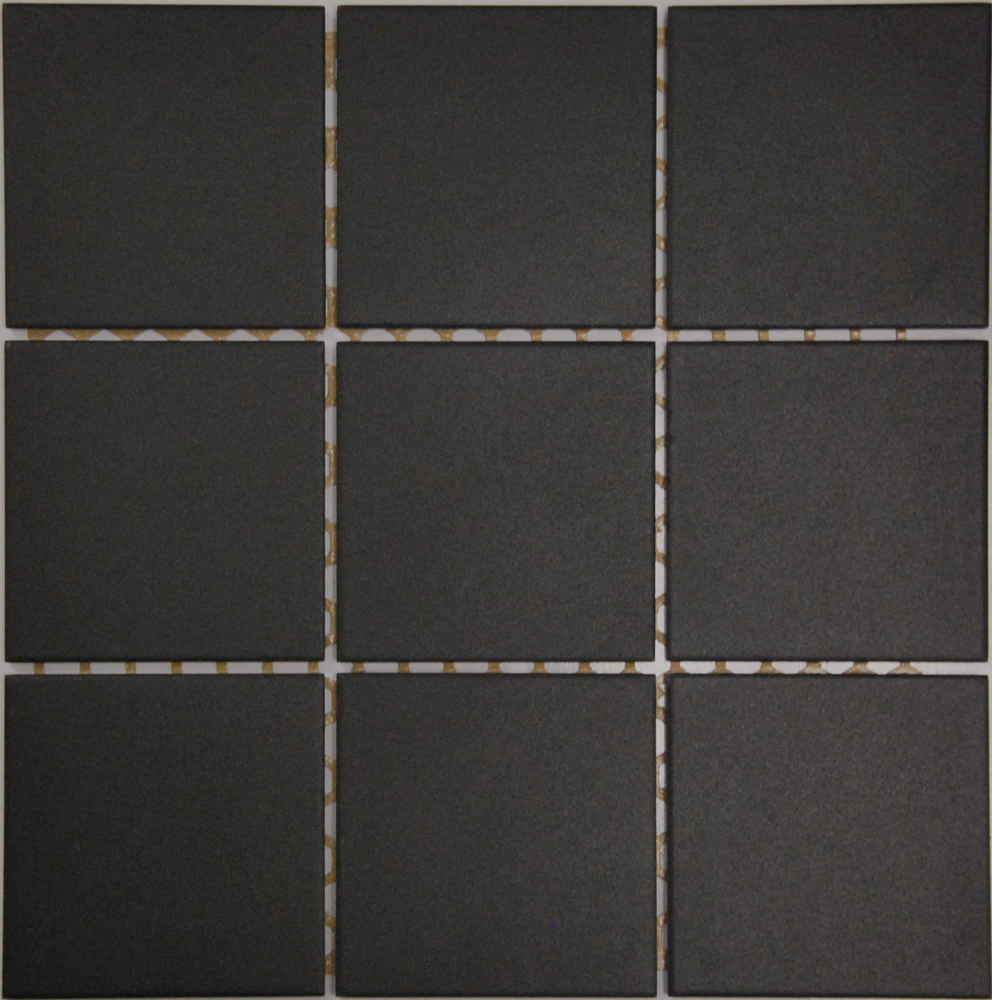Black ceramic/porcelain ,Matt finish mosaic, suitable for wall, high foot traffic & wet areas. Piece size: 98mm x 98mm Sheets per m2: 11