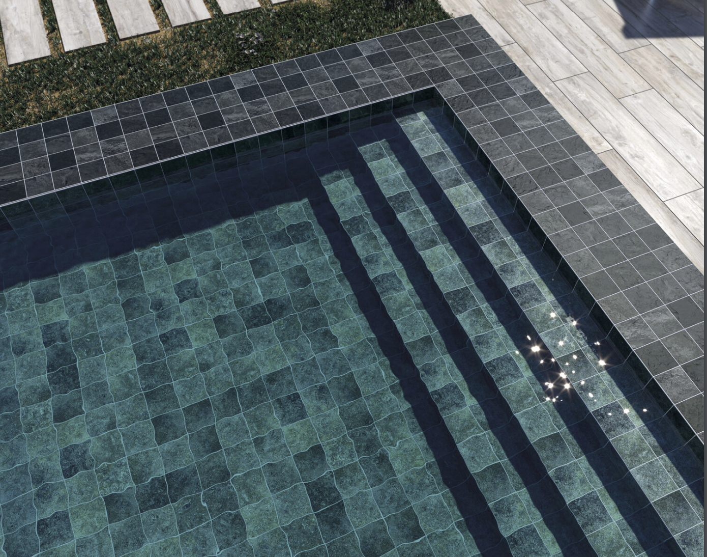 Blue gloss finish, premium ceramic tile, colour V3, Grout 2-3mm. Suitable for walls and pools.