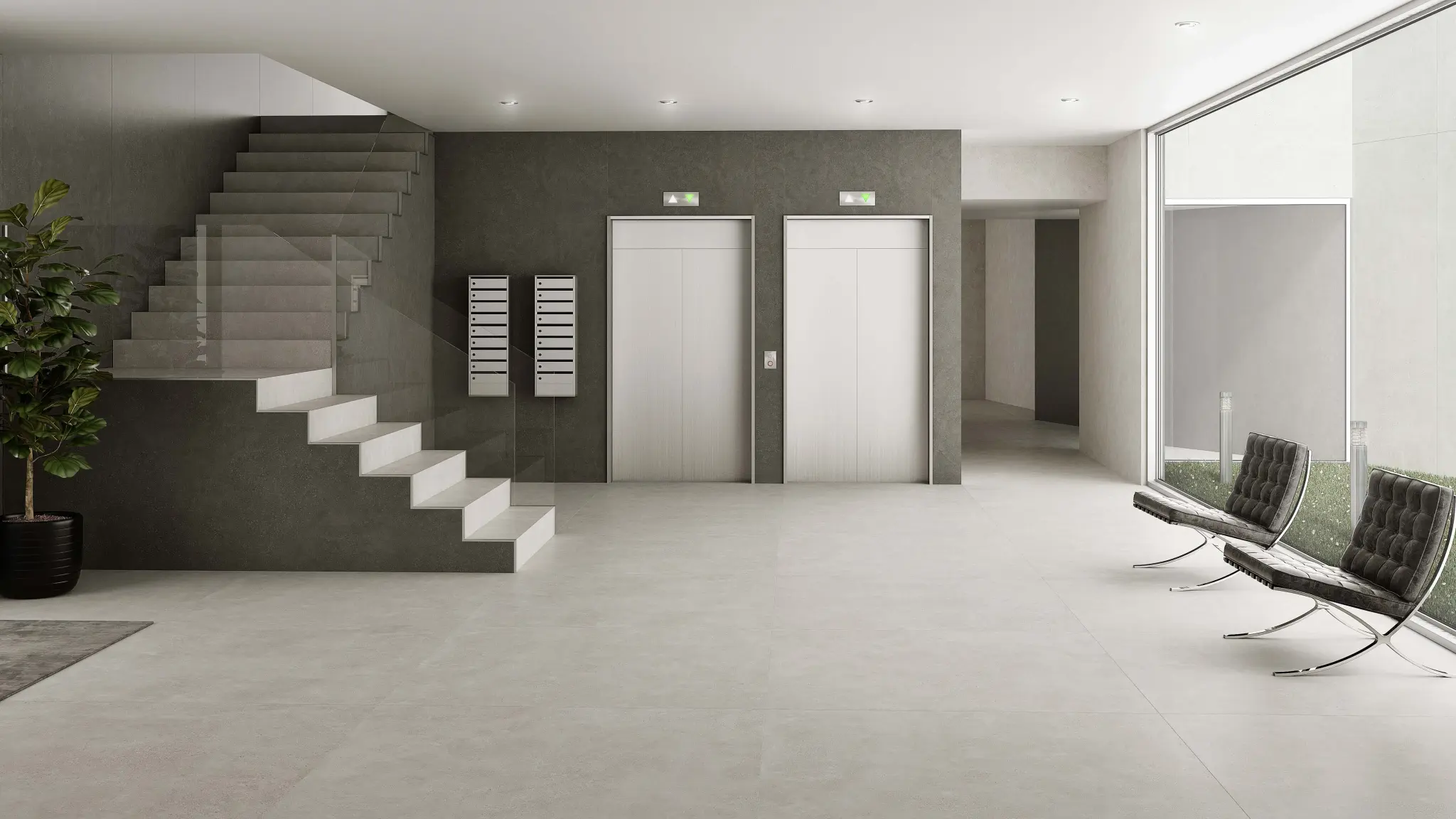 Large format porcelain tiles.The realism of concrete combined with the resistance of ceramics. A renewed industrial aesthetic that enriches the appearance of concrete thanks to the three shades available in the collection. Breadth, timelessness and versatility in any room featuring a contemporary style.
