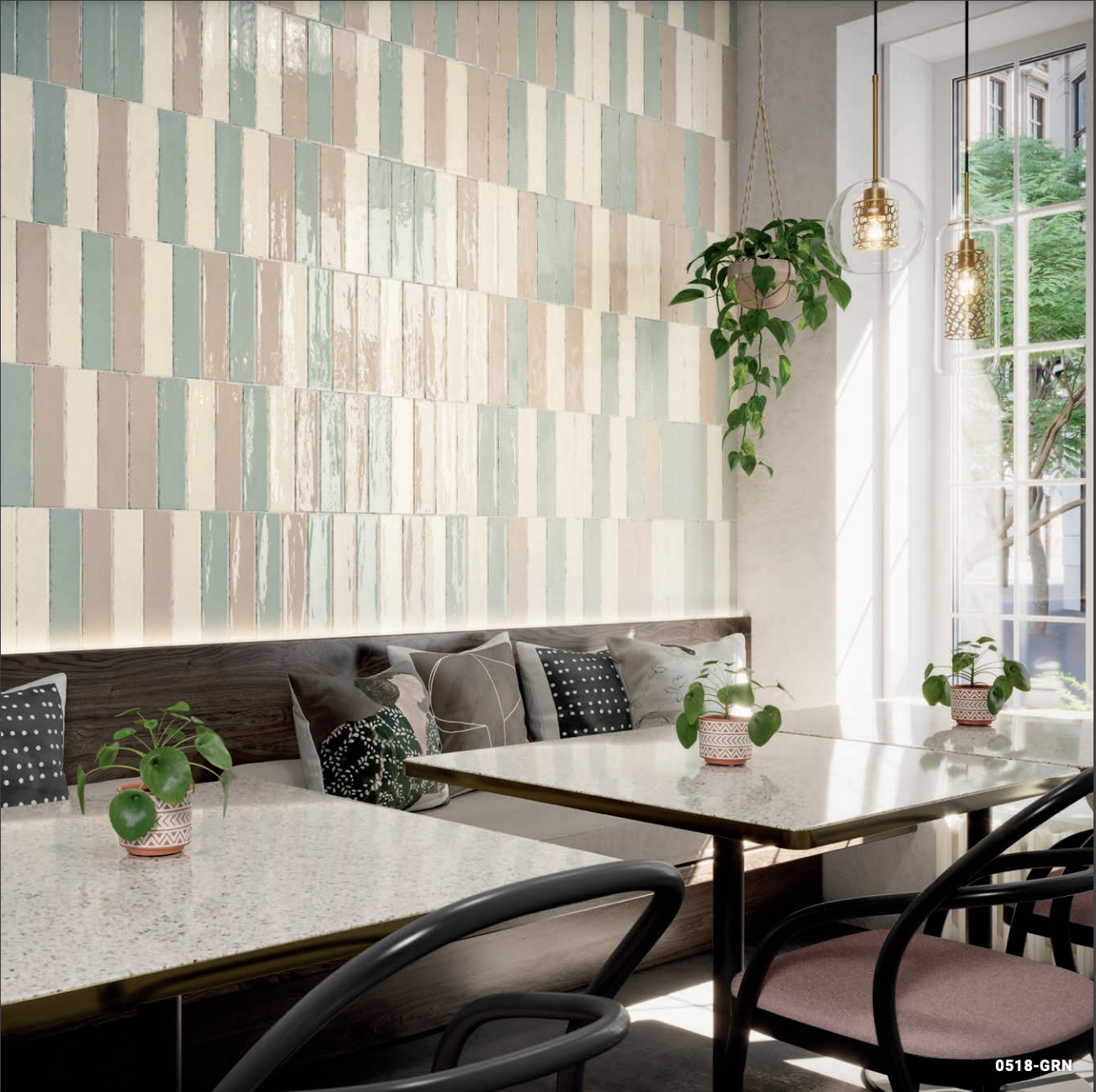 Green non rectified glazed white body ceramic tile, Gloss finish , MOHS 2. Suitable for walls only