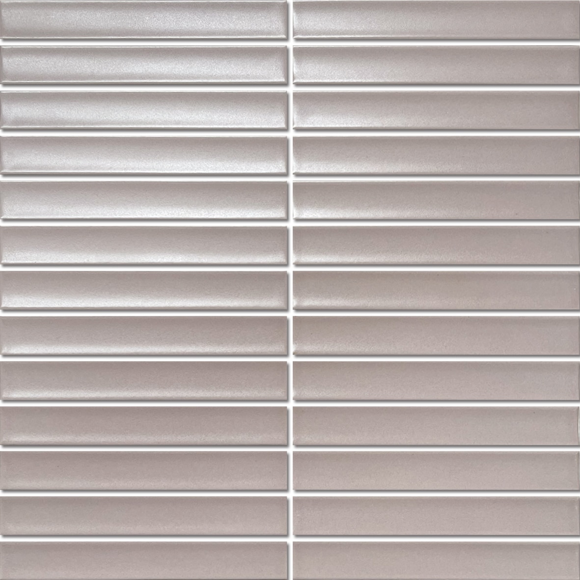 Dusty pink matt Autumn Fairy ceramic kitkat, suitable for walls and wet areas. Piece size: 20x145x8mm Sheets per m2: 11
