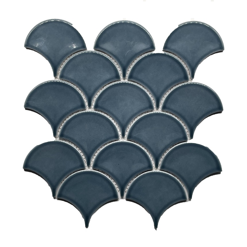Blue Fan shape matt ceramic/porcelain mosaic suitable for Floor, Pool, Shower Floor, Wall Piece Size 87 x 94mm 14 sheets per sqm