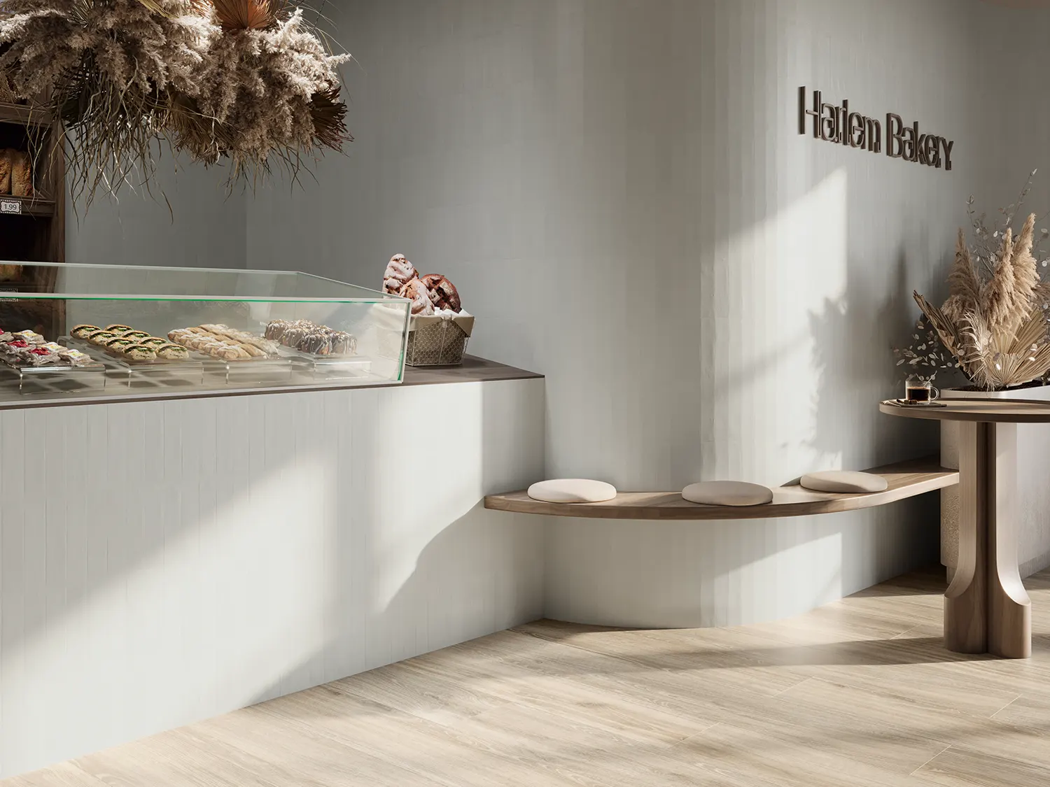 Ivory porcelain tile, Matt finish, Colour V1, 10 faces, grout 2-3mm, PEI 4 & MOHS 4. Suitable for walls & floors.