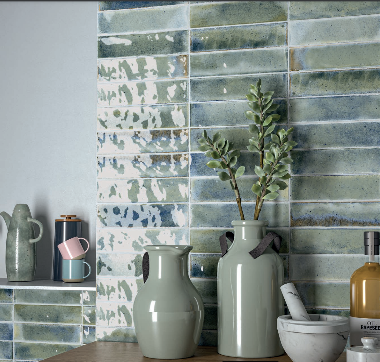 Mint porcelain non rectified tile, Gloss finish, Colour v3, MOHS 3 and PEI 3. Suitable for walls and floors.