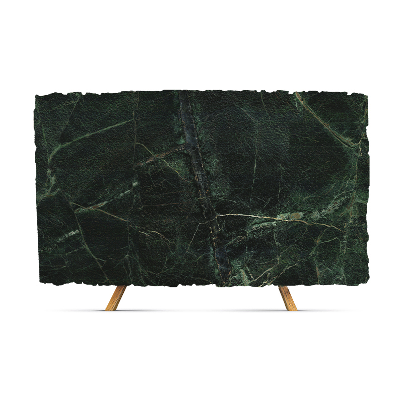 Green marble slab, polished finish, All applications, but not recommended for kitchens.