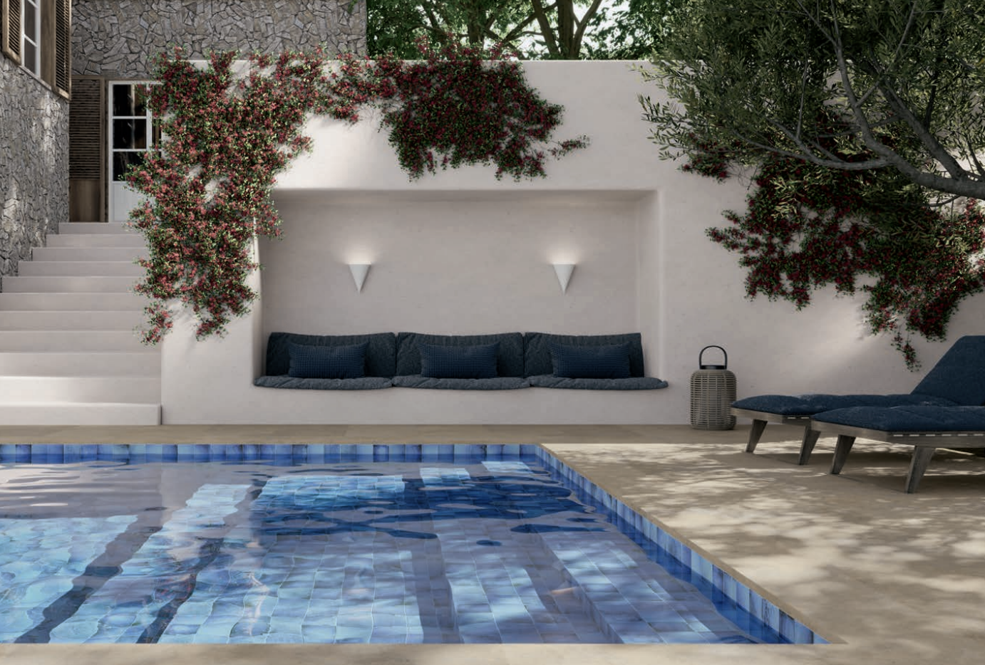 Matt finish porcelain tile, colour V4, grout 2-3mm, PEI3. suitable for walls and pools.