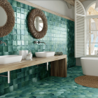 Green Gloss finish,White Body ceramic tile, colour V4, Grout 2mm. Suitable for walls and pools.