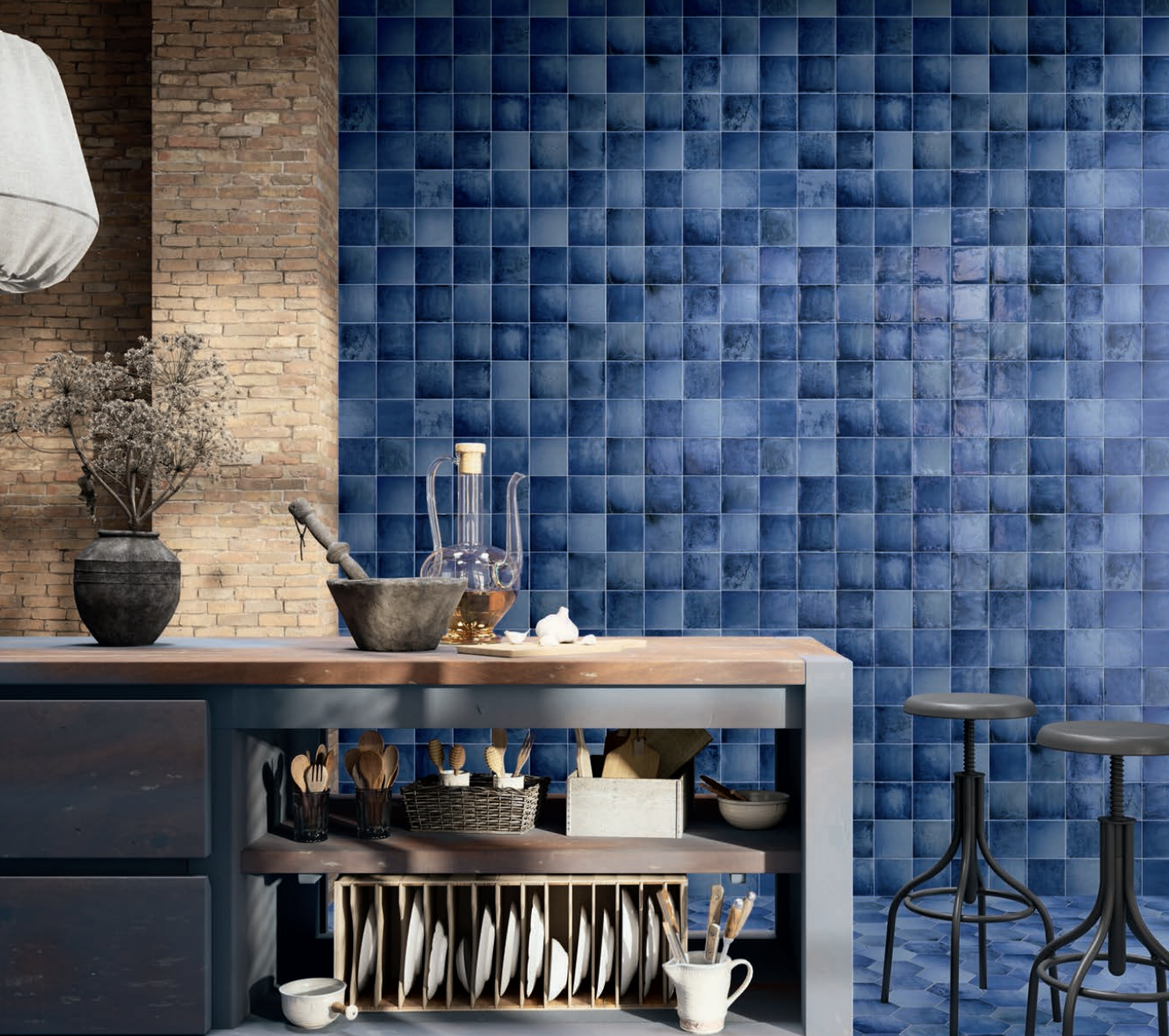 Blue Gloss finish,White Body ceramic tile, colour V4, Grout 2mm. Suitable for walls and pools.