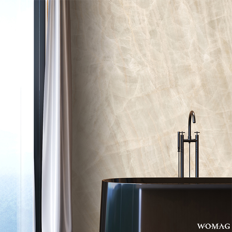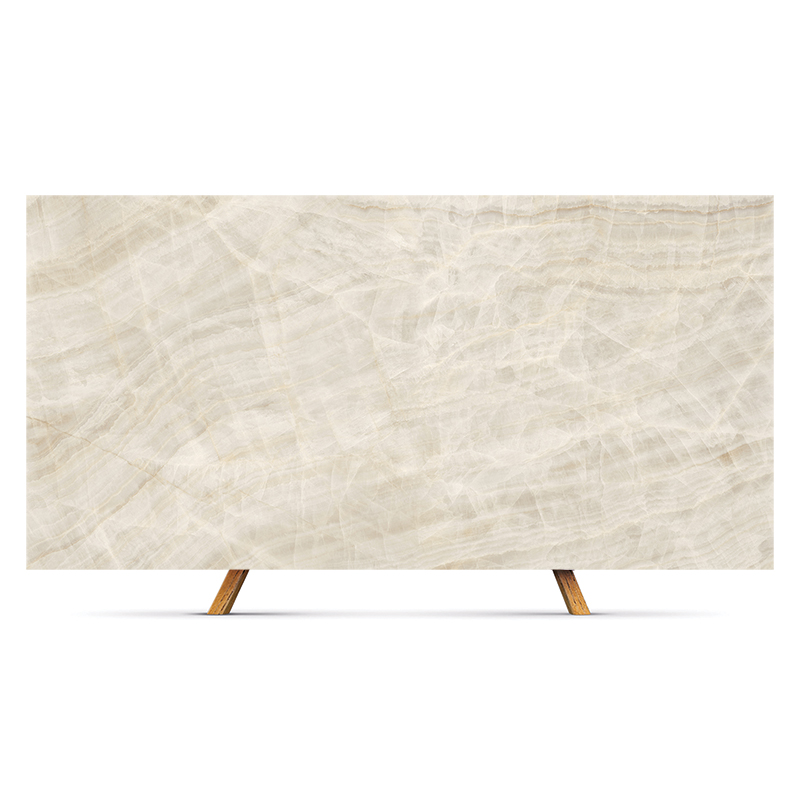 Beige Porcelain, Polished finish. Suitable For Floor applications, wall cladding, kitchen countertop and bathroom vanity fabrications.
