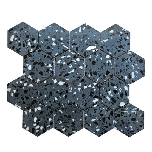 Black, Hexagon mosaic suitable for Floor, Pool, Shower Floor, Wall. Piece Size 82x72mm 16 sheets per sqm